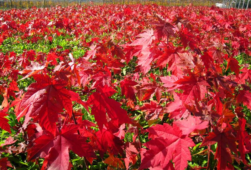 美國紅楓是雙子葉植物綱的植物,這種植物屬于落葉大喬木的品種,生長速度比較快,成年后的樹木身高可達12至18米。因此是非常好的環境綠化植物,可以有效增強環境的美觀性。美國紅楓的樹葉顏色比較特別,尤其是在秋季色彩奪目,以深紅色為主。