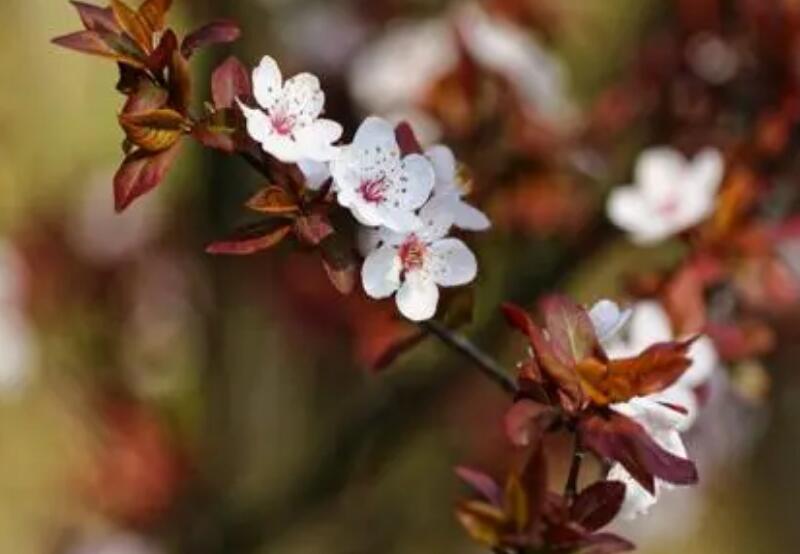 紅葉李所用的砧木是山杏通過嫁接而來的,而紫葉李所選擇的山櫟做的嫁接,也因為所選擇的砧木不一樣,這二者的顏色自然會有一定差異。