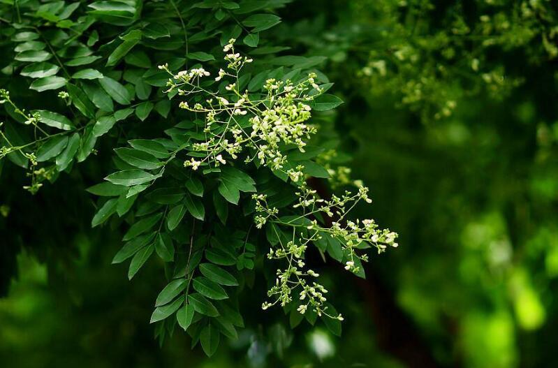 槐樹的樹形非常的高大,而槐樹的樹葉形狀跟羽毛相似,開出的花通常為淡黃色,槐樹花既美麗,同時也可以食用,還可以作為調色的顏料?;睒涫且环N花期比較長的花術之一,花期通常是在每年的夏季末尾。