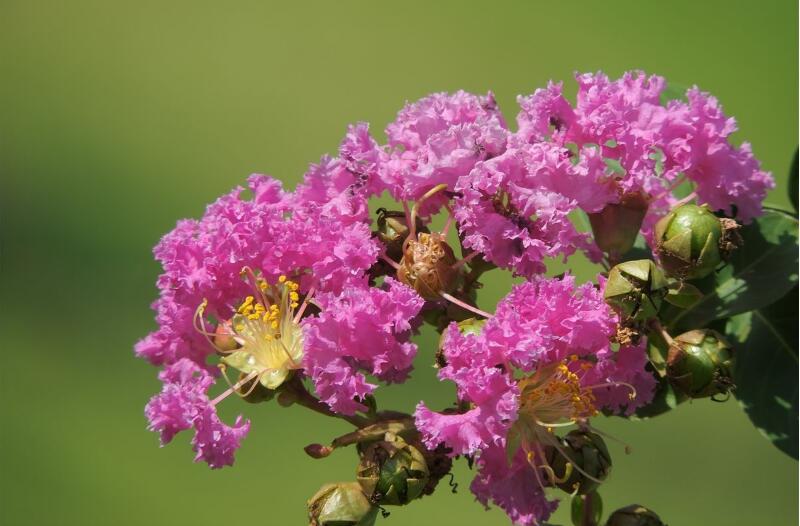 百日紅紅的花型非常的美艷且大方,她的花瓣小巧精致,層層疊疊形成一個小花絮,而小花絮之間,又簇擁成一朵比較大的花朵而且白日紅的花色非常的艷麗,通常為大紅色或者是粉紅色,紫紅色百日紅顧名思義,它的花期是比較長的,而且氣味也比較的清香。