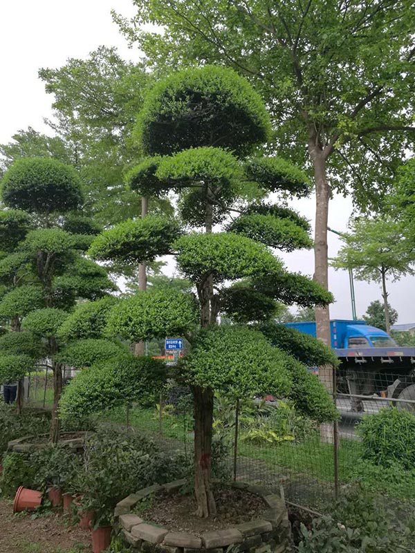 老樁小葉女貞造型樹的存活率很高,根系也很發達,它的枝條往往呈現出柔嫩狀態,盤扎定型效果會功能化,不僅日常,它的樹形優美,冠形整齊。有很強的分蘗能力,也有耐修剪的特點。