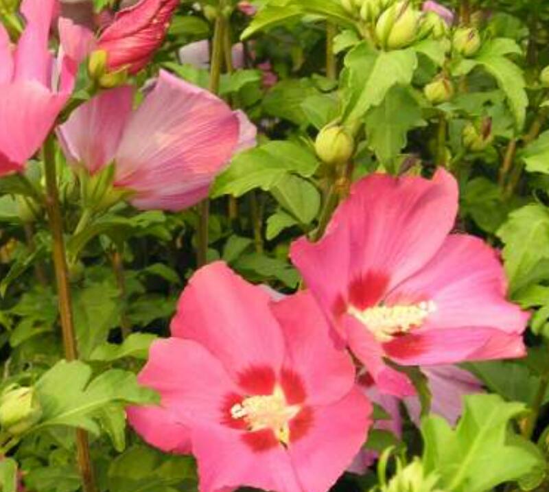 木槿花的花冠像鐘狀的,而且顏色比較豐富,這種植物的葉子是青綠色的,葉子的形狀像菱形的。這種植物的高度通常是3~4米,有些品種也會高一些。