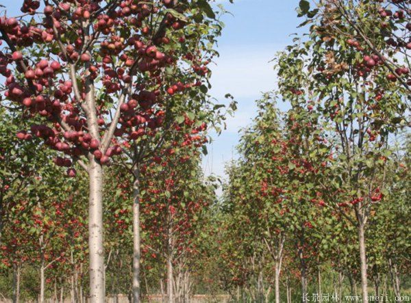 北美海棠還能夠與許多種大喬木,大灌木,落葉地被,草花植物等搭配栽植成各式各樣的景觀,還能裝點草地,不只是充實了景觀色調,又帶動了游園氛圍。我國著名的北美海棠園景色有武漢、揚州、畢節、重慶、寧波等,因為園林綠化在社會經濟發展,文明發展的重要地位,北美海棠已經成為了許多省份使用數量很大的園林苗木品種