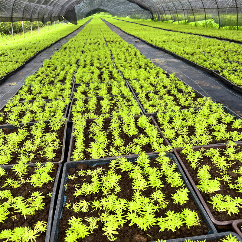 供應金葉佛甲草方盆苗,托盤苗,金葉佛甲草的葉片顏色為金黃色,高度在10-20公分左右,繁殖速度非常快,可以說是落地生根,斷掉的莖葉到了地上就能夠生根。佛甲草多少錢一平方?佛甲草按40*40托盤來購買,一個平方需要6個托盤,一個托盤按照10元計算,是60-70元左右,也有佛甲草是按斤或者按株賣的,不過也是可以按平米賣的,大概一平米的佛甲草價格大約60~70元左右。買金葉佛甲草,還是找專業供應商,買的放心。