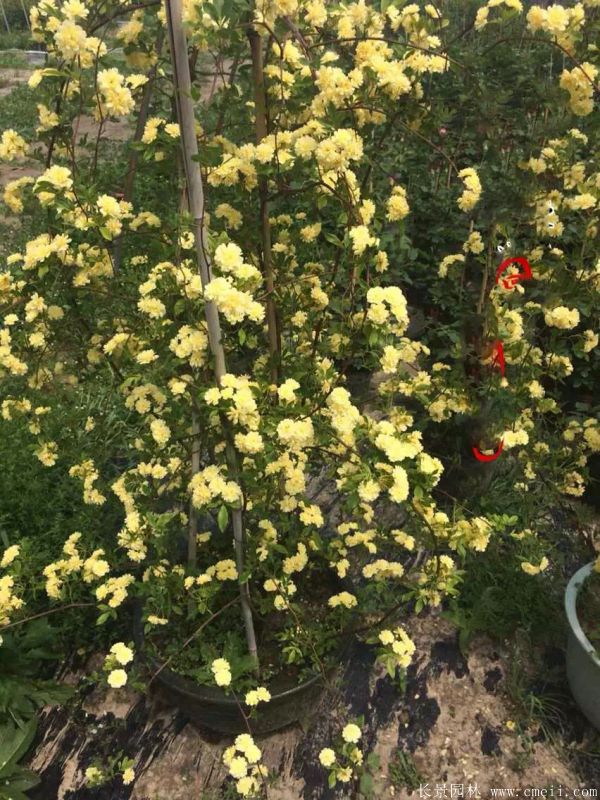 木香,是一種落葉喬木或是一種落葉大灌木,樹體總高1.5~3.5米左右,規格粗度小點的有2厘米3厘米4厘米5厘米6厘米7厘米大一點的有地徑8厘米10厘米12厘米15厘米等,還是有叢生木香,蓬徑大小2~3.5米,木香葉子色彩是墨綠色,橢圓形,新芽早春3月生長,秋季下霜枯萎。品種不同,葉子,花蕾,樹枝還是有點細微的差別,木香花蕾色彩是有桃紅等。