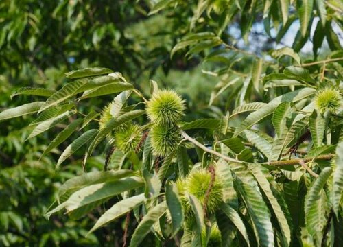 板栗是一種綠葉大喬木植物,大多生長(zhǎng)在平地至海拔2800米山地,我國(guó)板栗的主要產(chǎn)區(qū)有河北、山東、河南、江蘇、貴州等省區(qū)。板栗屬于殼斗科植物,適應(yīng)能力很強(qiáng),但對(duì)于土壤的酸堿度比較敏感,適宜在酸堿度在4.5-7的酸性條件下生長(zhǎng),植株喜溫,適宜生長(zhǎng)的溫度在15℃左右。板栗在我們的生活中主要具有食用價(jià)值,含有豐富的胡蘿卜素、氨基酸及鐵、鈣等微量元素,如果經(jīng)常吃的話,可達(dá)到養(yǎng)胃、健脾、補(bǔ)腎、養(yǎng)顏等保健功效。