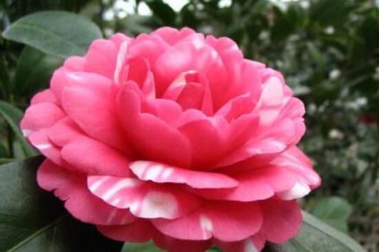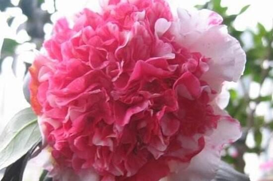 皇冠山茶花為花牡丹山茶花的變種,花色為紅白混合交叉,由于花色和杜鵑品種的皇冠靠近,所以也沿用“皇冠”為其名。花期在1~2月份。