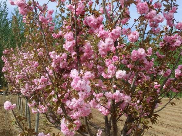 紅葉櫻花是櫻花中既可觀葉又可觀花的品種,初春展葉為深紅色,5-7月份葉為亮紅色,后老葉漸變深紫色,晚秋下霜季節葉變橘紅色;紅葉櫻花花特別大、花徑30-45毫米,淡紅色、重瓣。在園林綠化中可以取代紫葉矮櫻紅葉李的名貴觀賞彩葉樹種。紅葉櫻花在江蘇沭陽、山東、浙江等地皆有種植,生產培育紅葉櫻花的基地有也數百家,以沭陽長景園林的紅葉櫻花種植面積大,規格最全,苗圃現在主要規格有0.5-3公分的紅葉櫻花小苗,以及6-20公分的紅葉櫻花樹苗木生長健壯、冠幅飽滿、觀賞性好,一手貨源,低價批發,有需要紅葉櫻花的朋友歡迎來電咨詢。
