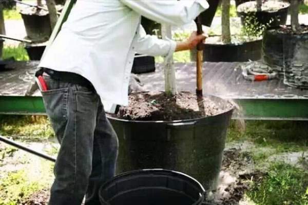 容器苗換盆:添加基質